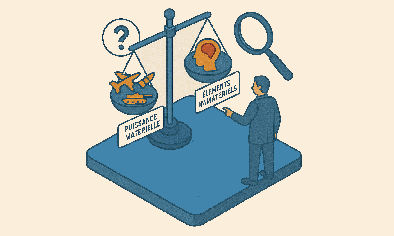 - Entre puissance matérielle (armement, logistique, ressources) et éléments immatériels comme le moral, le leadership ou la stratégie, l’équilibre est souvent complexe.