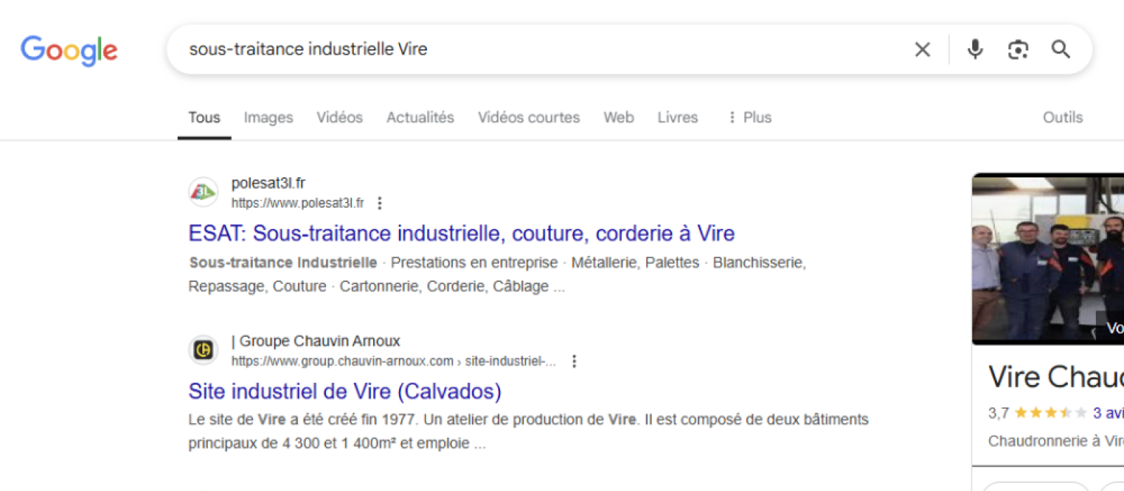 SEO | 1er pour "sous-traitance industrielle Vire"